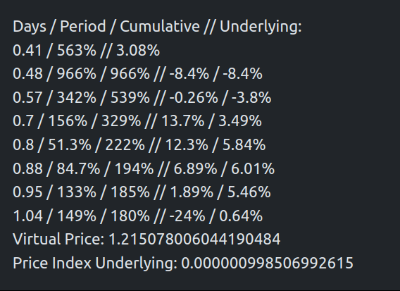 the APY achieved between 0.95 - 1.04 days ago is 149%